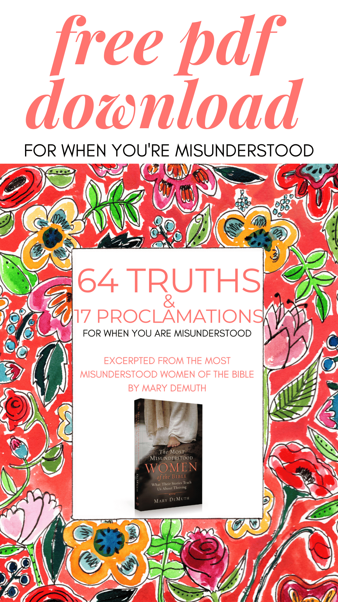 Get this free PDF with 64 powerful truth statements and 17 proclamations to say (and believe!) when you walk through the valley of misunderstanding.